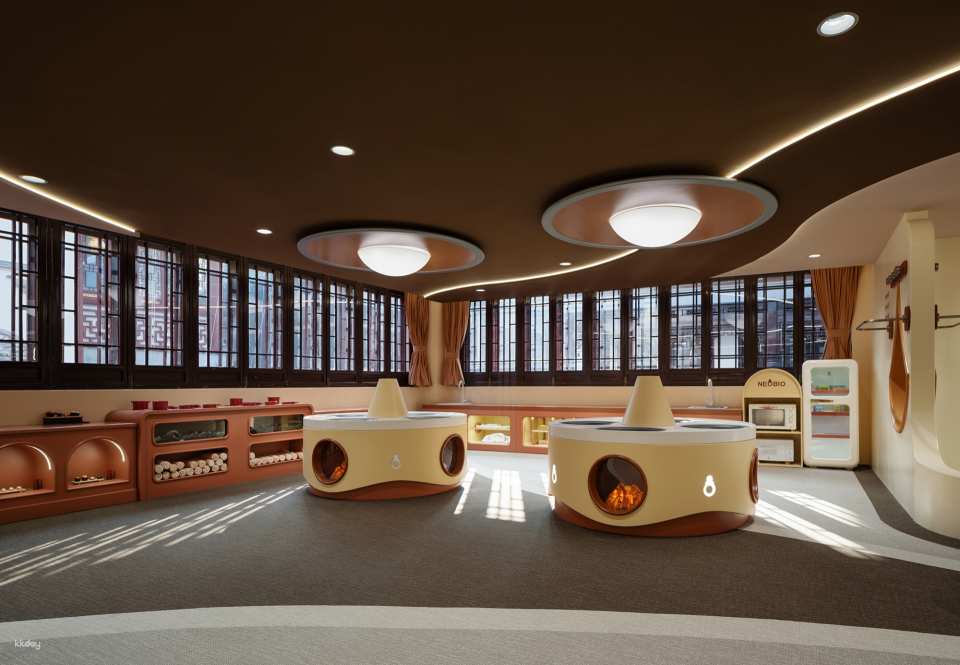 上海奈爾寶家庭中心(豫園店)的特色是融合新東方美學與古韻文化的沉浸式親子體驗空間. 該店以5000㎡的超大空間,將歐式公主風與中國傳統元素結合,設有圖書館、餐廳、攀爬王國、模擬城、派對世界等五大區域. 此外,還有獨具特色的「中藥坊」、「古風裝扮公主房」、「烘焙教室」等區域,讓孩子在遊玩中學習和體驗傳統文化.