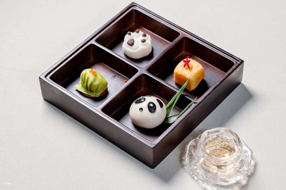 港式點心 (玲瓏蝦餃、咖啡糯米餈、西葫蘆酥*、熊貓流沙包*)