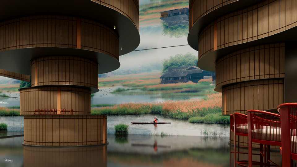 燈光熄滅,好戲開場。整間餐廳的牆壁瞬間消融,化為一副270°環繞的山河社稷。您將親歷江南園林的“咫尺藏天下”,隨遊船看小橋流水在眼前浮現,看天青色煙雨在餐盤上暈染,體味東方神韻。