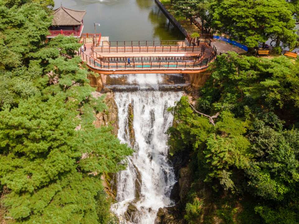義林池是堤川知名的景點之一,環島1.8公里。龍湫瀑布上面有玻璃步道,景色優美壯觀。