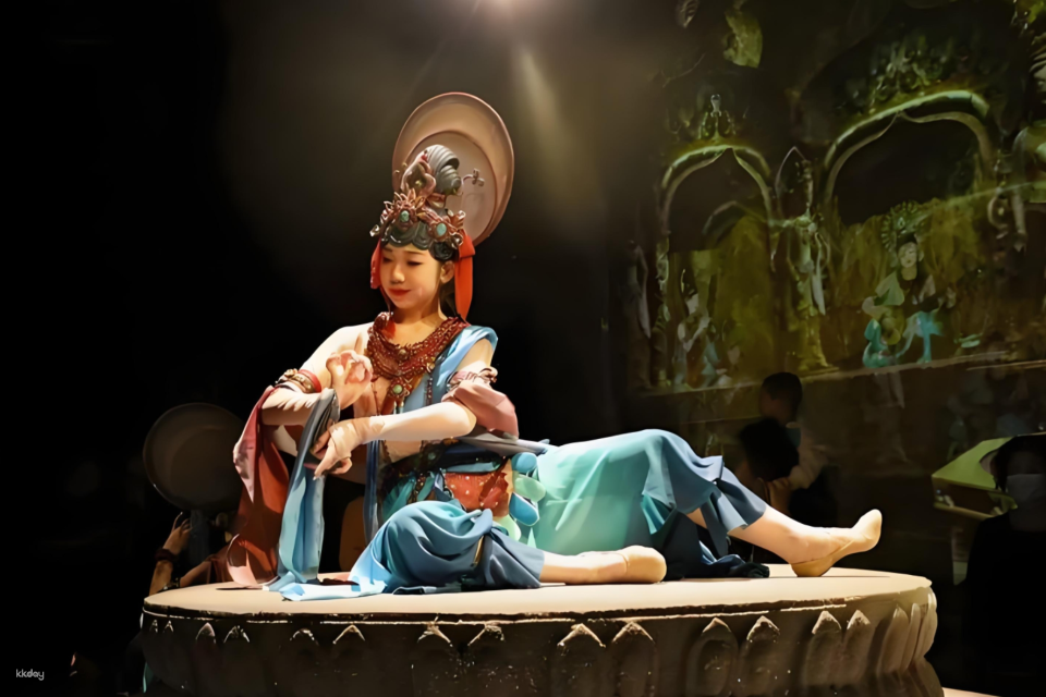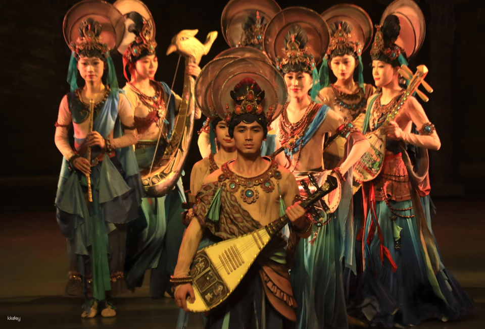 The work traces the origins of Dunhuang culture, and uses in-depth interpretation of the Mogao Grottoes murals and ancient scriptures in the Sutra Cave to activate the research and development results of Dunhuang ancient musical instruments and ancient music scores. It uses high-tech means such as holographic projection and 3D Wia to present it in a fully immersive way. , interpreting the touching story of Bai Xin, a young man from the Western Regions who pursues art.