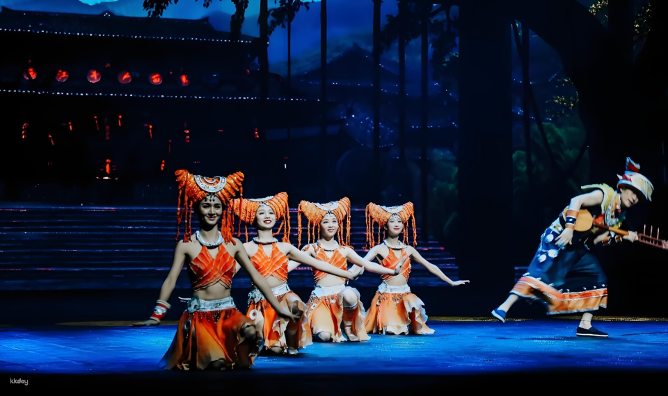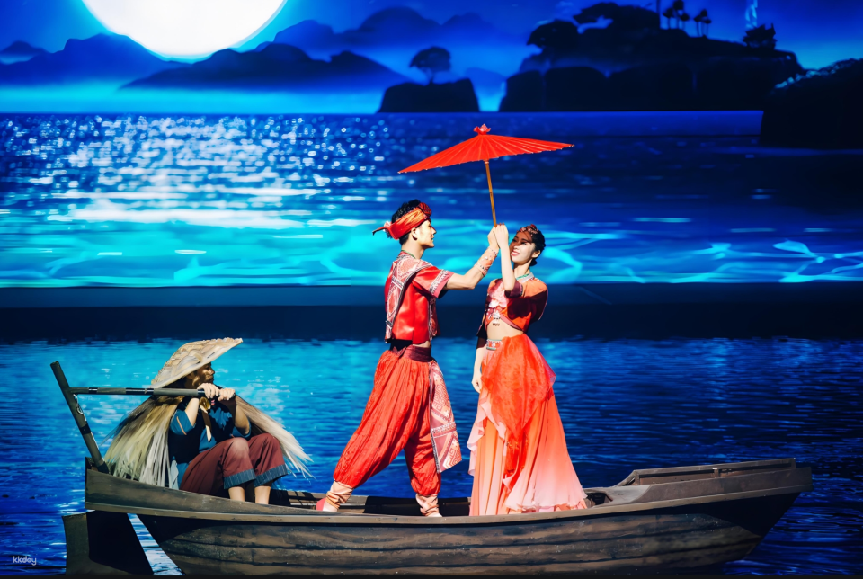 The whole play of Guilin's Eternal Love is divided into "Call of the Ancients", "Flying Song of the Earth", "Rice Noodles Telling Love", "Jingjiang Prince's Mansion", "Liu Sanjie" and other scenes. It uses advanced sound, light, electricity and other high-tech means and stage machinery to perform on water, land and air. The three-dimensional space sings the legend of the truth, goodness and beauty of the Bagui land that travels through time and space, and brings the Bagui culture hidden under the mountains and waters of the 800-mile Li River into everyone's field of vision.