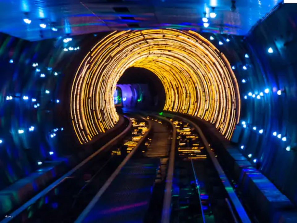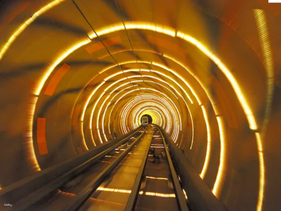 ・The Bund Sightseeing Tunnel The Bund Sightseeing Tunnel is a 650m-long under-river tunnel that connects Shanghai's most famous tourist area, The Bund, with Lujiazui. The tunnel's inner walls are decorated with colorful lights and background music, which liven up the atmosphere. The driverless, automated vehicles are made of glass, giving a wide field of vision, and the effects of the 3D images and 6D sound system, as well as the ever-changing scenery before your eyes, give you a strong sense of realism.