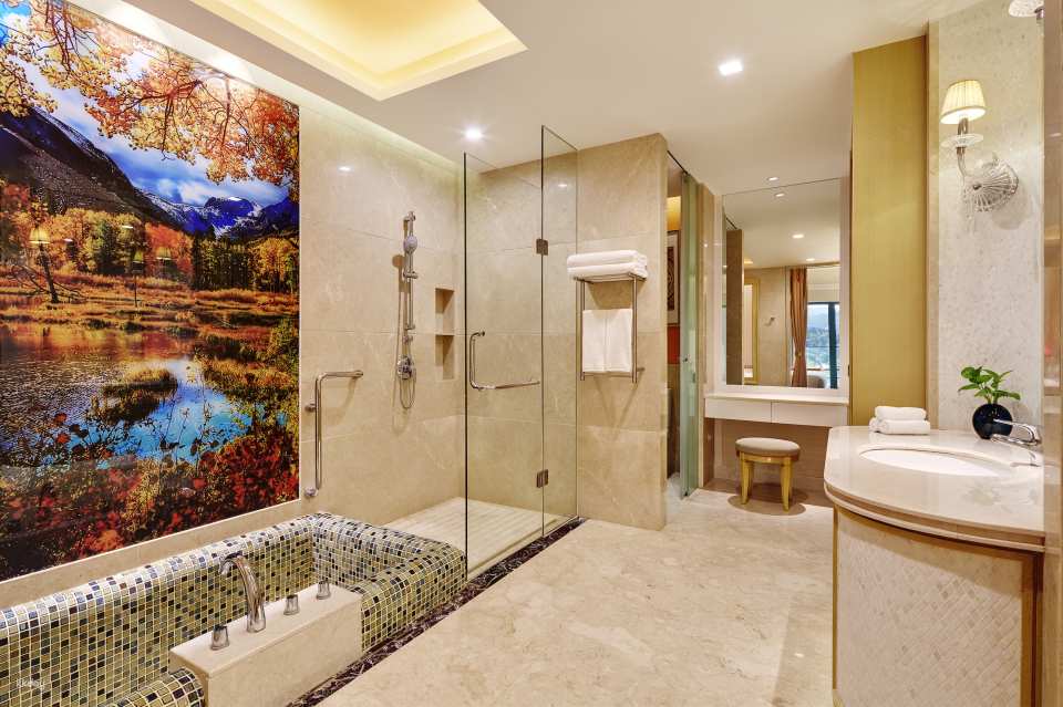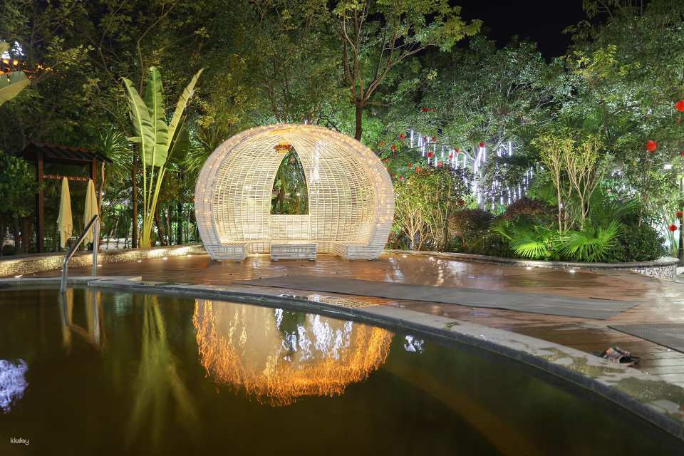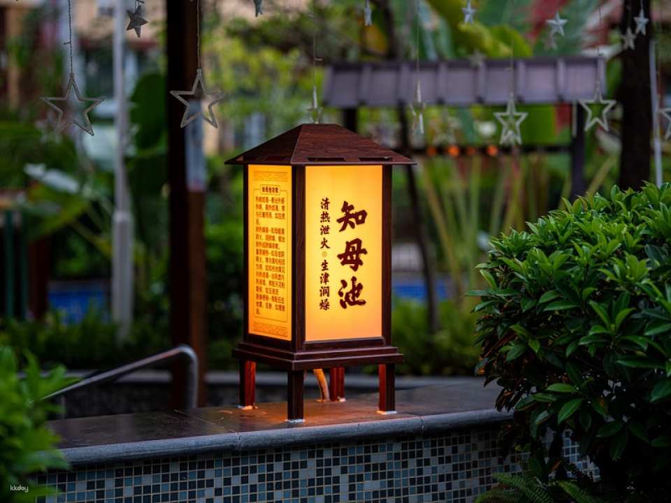[Traditional Chinese Medicine Hot Springs] Nestled against the mountainside, enjoy over 60 natural hot springs, both indoors and outdoors. Planned according to the Five Elements (gold, wood, water, fire, and earth), these two springs are based on the rare elements bicarbonate and iron. Enjoy a luxurious multi-functional lounge, dry and wet steam rooms, tea service, an indoor heated swimming pool, and a fitness center. This resort has been awarded the title of Guangdong Famous Spring.