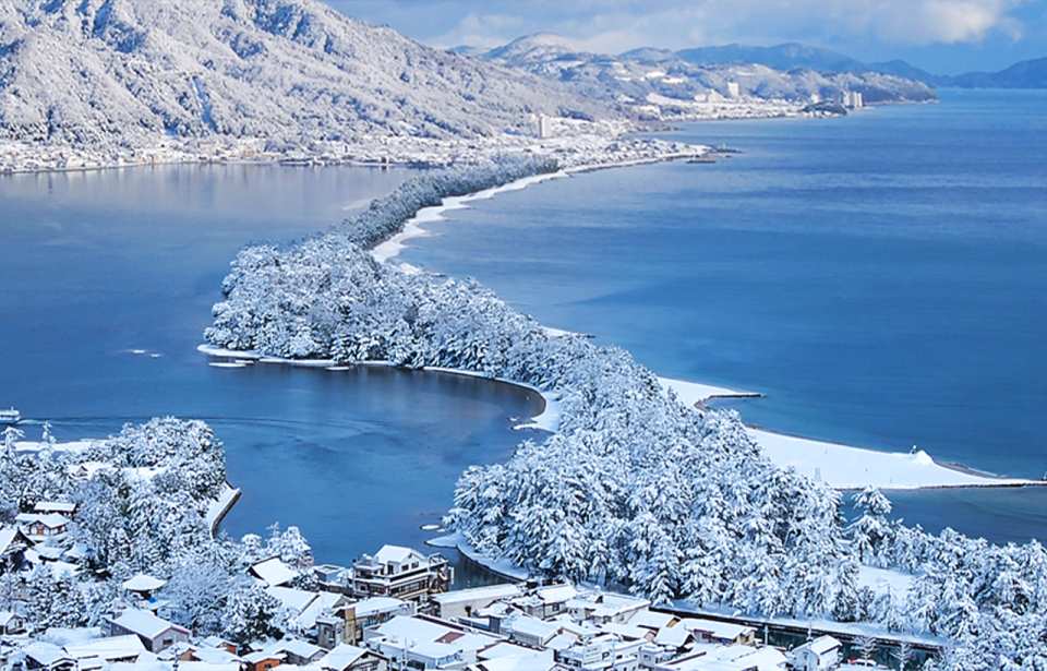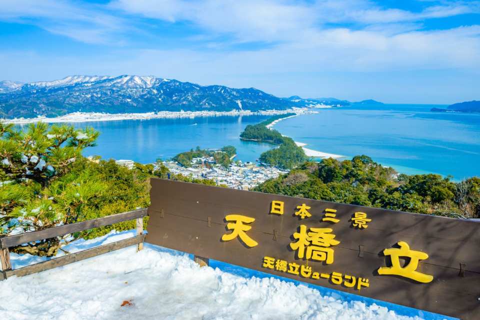 "Amanohashidate" in Miyazu Bay of the Sea of Japan is one of the special scenic spots known as the "Three Views of Japan" together with "Matsushima" in Mutsu and "Miyajima" in Aki. It is about 3.6 kilometers long and is a sandbar formed by the sedimentation of the coast into a sand spit. There are about 8,000 pine trees of all sizes on it. There are white sand beaches on the east and west sides. It is a special natural landscape. Its shape is like a bridge extending diagonally to the sky, so it is named "Amanohashidate". Because it is located at the intersection of the Aso Sea and the Miyazu Bay of the Sea of Japan, you can not only enjoy the pure natural scenery, but also have a panoramic view of the vast sea view of the island.