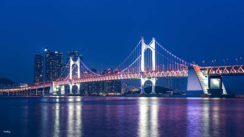 See the twinkling lights of Busan on this panoramic tour of the city. If you're limited on time, this is a great way to see some of Busan's most popular and impressive landmarks, enhanced by brightly colored lights. Marvel at the spectacular Gwangan Suspension Bridge, illuminated at night, and stretch your legs with a relaxing stroll along Gwangalli Beach. You'll also learn about Busan's culture and history throughout your trip as you travel between each landmark. Don’t worry, you’ll still have plenty of time to take photos at each stop to capture the perfect shot of Busan’s glittering skyline!
