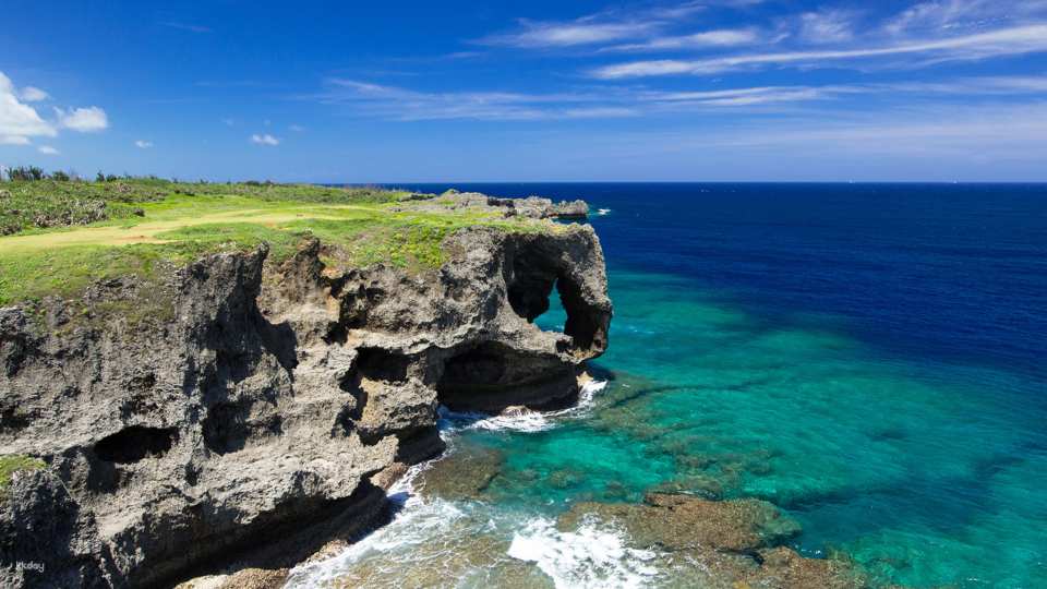 Start your Okinawan guided bus tour at Naha, then head oceanfront for stunning views of Cape Manzamo, a cliffside rock formation shaped like an elephant’s trunk. Drop by a local supermarket for a quick snack before crossing a two-kilometer bridge to Kouri Island. Marvel at the magnificent scenery of the ocean along your way, then enjoy the island’s dazzling white sand beaches and crystal clear shallow waters.