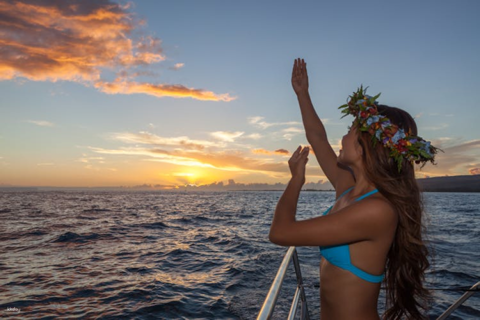 The Holoholo catamaran will guide you along smoothly and when the bell rings, it’ll be time to enjoy a delicious Hawaiian-inspired dinner. There will be water, soft drinks, juices, beer, wine, seltzers or Giner Mai Tai’s made will award-winning local Koloa Rum. At sunset, you’ll have some champagne at sunset to celebrate the day because you get to enjoy another beautiful day in this paradise!
