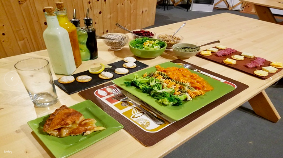 Jump on a dog sled and be led by a team of adorable huskies. Ride across the snow-covered pathways and take in the views along the way. Catch sight of towering trees and surrounding hills. After a day out in the wild, come back to a cozy cabin. Warm up with a home-cooked meal of Alaskan appetizers, hearty pasta, and bread with jam.