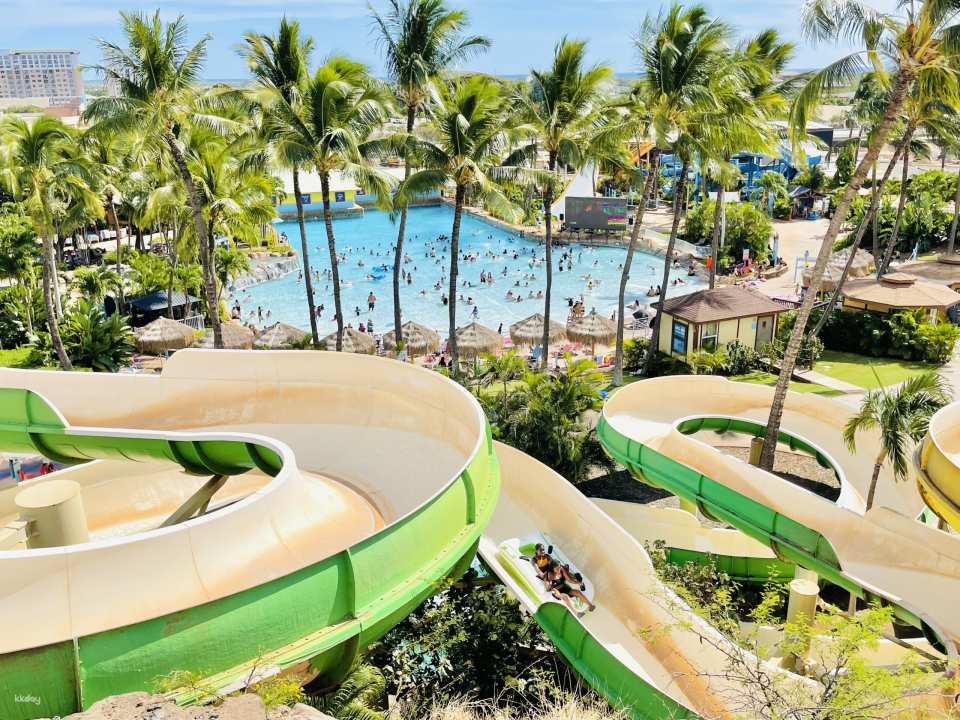 Explore over 25 exhilarating attractions at Wet ‘n’ Wild Hawaii, catering to all, from families with young kids to extreme thrill-seekers. Dive into the heart-pounding Shaka slide, as it plunges you down a sheer 36-foot drop into a U-shaped slide that delivers a zero-gravity sensation.