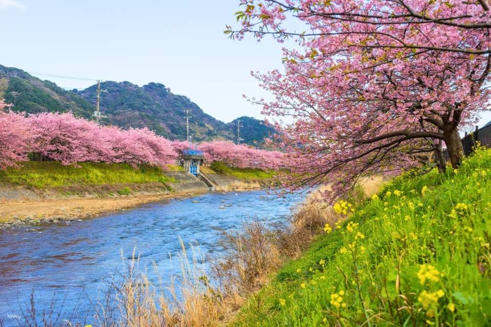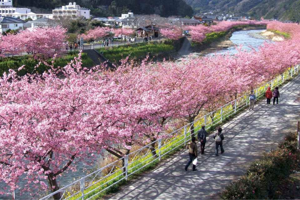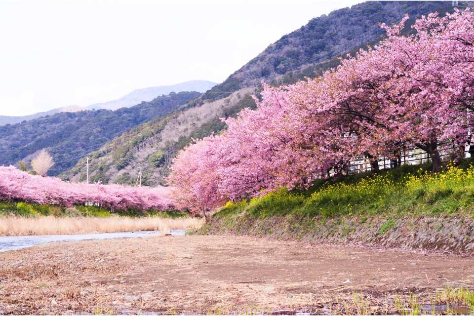 Admire the Kawazu Sakura, native to Kawazu Town, the top spot for early cherry blossoms near Tokyo. Starting mid-to-late February, over 850 Kawazuzakura trees bloom along a 4-kilometer river. The 700-meter flower path, lined with vibrant rapeseed flowers and pink cherry blossoms, is a must-see experience you won’t want to miss!