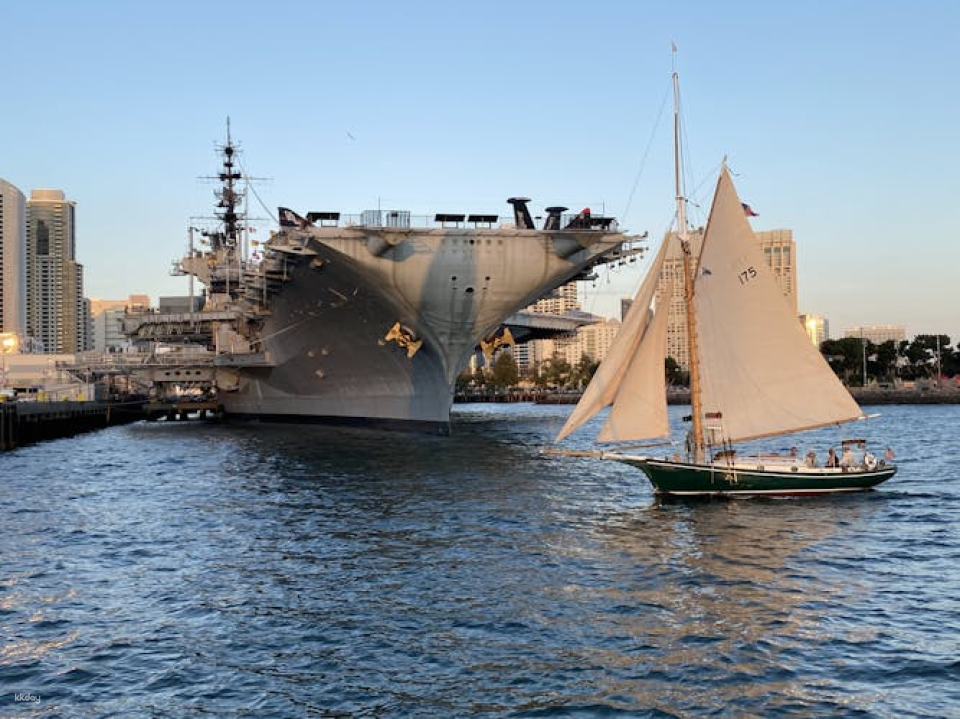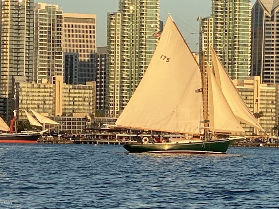 Book an unforgettable tour with Captain Phil and sail in style aboard Liberty, a stunning replica of a 1904 gaff-rigged Friendship sloop. Her best features include highly-finished woodwork, bronze fixtures, and gaff rigging that showcase the exceptional wood working and craftsmanship of a bygone era. With over 50 years of sailing experience, Captain Phil offers an unparalleled tour of San Diego Bay that combines breathtaking views, local history, and great photographic moments. Relax and enjoy unlimited refreshments, including craft beer, white wine, sodas, water, and packaged snacks.No other sailing tour on the bay can match the beauty and personalized touch of our family-owned and operated business. During the cruise, you’ll be able to relax and admire the main landmarks of San Diego harbor such as the Aircraft Carrier Midway, Sea Port Village, Coronado Bridge, the Naval base, Point Loma and the Star of India Clipper Ship.Looking for a private tour? Simply book all six seats.