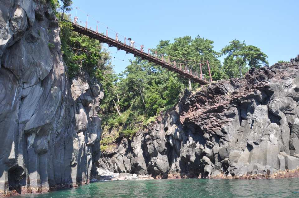Visit Jogasaki Beach, shaped by a volcano, and walk scenic trails to discover landmarks like Kadowaki Lighthouse and Kadowakitsuri Bridge.