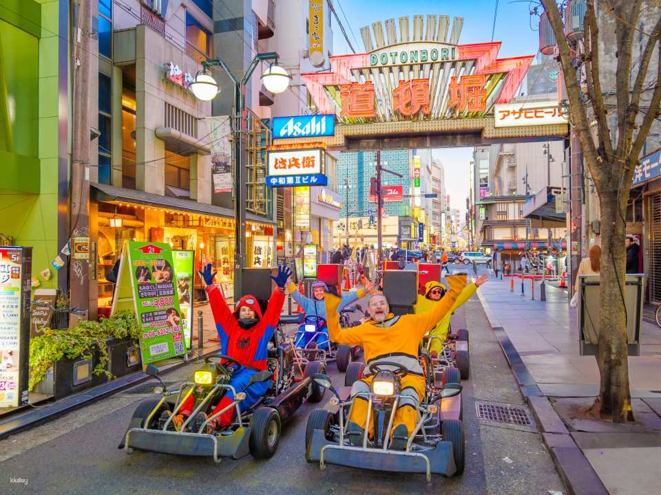 Dressed in cartoon costumes, go-karting with friends and family, explore Osaka's popular sightseeing spots! Since go-karts are considered mini-cars, you can drive them on Osaka roads with just a regular driver's license, without the need for a helmet or seatbelt!