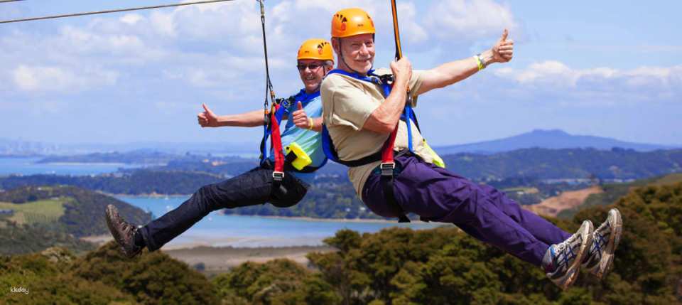 Begin your journey with a 20-minute Waiheke Highlights Tour, showcasing the island’s beautiful beaches and vineyards, before reaching Zip HQ atop Trig Hill. From here, take in 360-degree views before soaring across three unique dual zip lines alongside a friend.