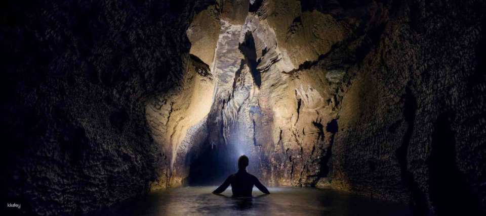 An extreme adrenaline rush is offered by this comprehensive, 5 hour caving tour into the Roakuri Cave’s famously black depths; climbing, flying fox & more! Join your experienced caving guides and embrace your wild side at Waitomo – perhaps New Zealand’s most famous cave network – and take on a series of challenges such as abseiling and cave tubing (also known as black water rafting) in the renowned “Black Abyss” that will push you to your limits.